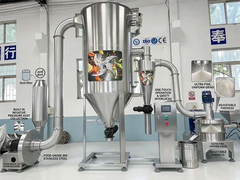 1. খাদ্য প্রক্রিয়াকরণ শিল্প: এটি ফল এবং উদ্ভিজ্জ খাবারের বিকল্প পাউডার, ফল এবং উদ্ভিজ্জ ফেসিয়াল মাস্ক পাউডার, শিশুর খাদ্য সম্পূরক পাউডার, মশলা (যেমন পেঁয়াজ গুঁড়া, রসুনের গুঁড়া) এবং অন্যান্য পণ্য উত্পাদন করতে ব্যবহার করা যেতে পারে। চূর্ণ করা আল্ট্রাফাইন পাউডার সরাসরি ব্যবহারের জন্য যোগ করা যেতে পারে, যা শুধুমাত্র পণ্যের স্বাদ এবং পুষ্টির সামগ্রীকে উন্নত করতে পারে না, তবে স্টোরেজ এবং পরিবহনের সুবিধাও দেয়, খাদ্য উদ্যোগগুলিকে পণ্য প্রতিযোগিতার উন্নতি করতে সহায়তা করে।